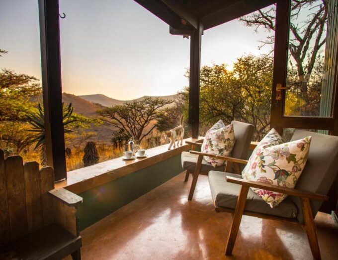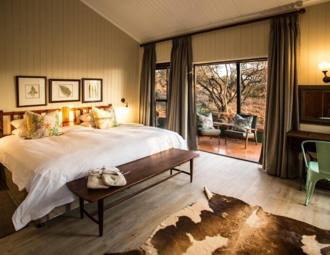 Les chambres du Three Tree Hill Lodge sont spacieuses et décorées dans un style africain élégant, mettant en valeur des matériaux naturels et des couleurs chaudes. Chaque chambre dispose d’un balcon privé offrant une vue panoramique sur la réserve et les collines environnantes, permettant aux visiteurs de profiter des levers et couchers de soleil spectaculaires depuis le confort de leur logement. Les salles de bains privatives sont équipées d’articles de toilette de qualité et offrent un espace fonctionnel et raffiné. L’attention portée aux détails assure un confort optimal et une atmosphère apaisante.