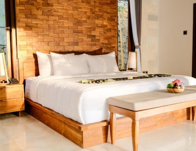 La décoration mise sur la simplicité élégante : murs clairs, bois naturels, textiles légers et touches artisanales balinaises. Les hébergements sont équipés d’une bouilloire, d’un lit confortable et d’une salle de bains privative avec articles de toilette offerts. Certaines chambres offrent même une vue sur la mer, rare à Ubud, ajoutant une note d’évasion inattendue.