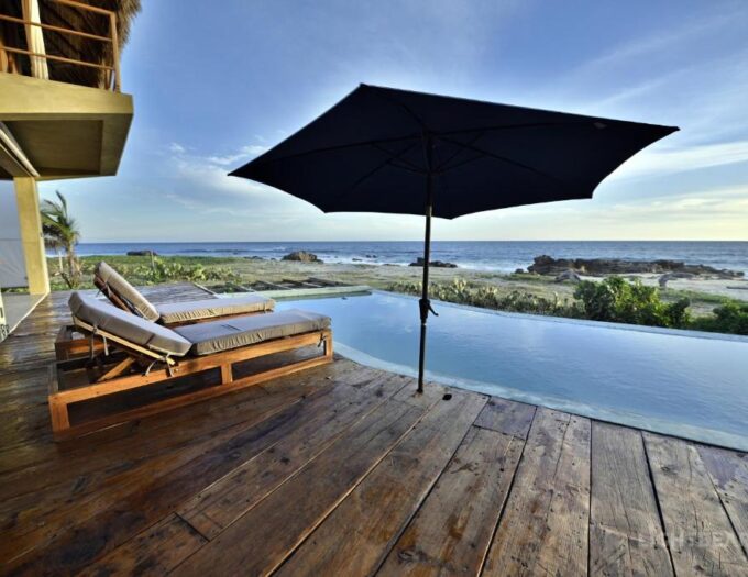 La plage d’Agua Blanca est réputée pour sa beauté sauvage mais aussi pour ses courants ; la baignade doit se faire avec prudence, bien que de petites piscines naturelles se forment souvent entre les rochers à marée basse. Le climat d’Oaxaca est chaud ; emportez des vêtements légers en coton et une bonne protection solaire. Profitez de la kitchenette pour acheter des produits locaux et du poisson frais auprès des pêcheurs du village voisin. La lumière du matin est idéale pour la photographie de la côte, tandis que les soirées sur la terrasse sont parfaites pour observer les étoiles, loin de toute pollution lumineuse.