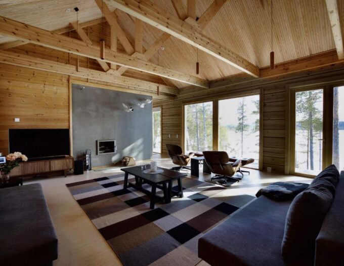 La villa convient à tous ceux qui recherchent un séjour à la fois actif et relaxant : après une journée de randonnée, de ski ou d’activités nautiques, vous pourrez vous détendre dans le sauna ou sur la terrasse, admirer le coucher du soleil sur le lac ou savourer un repas en famille ou entre amis dans le confort de votre lodge. Chaque détail a été pensé pour offrir une expérience immersive et authentique en Laponie, des matériaux naturels à l’aménagement intérieur en passant par les équipements modernes.