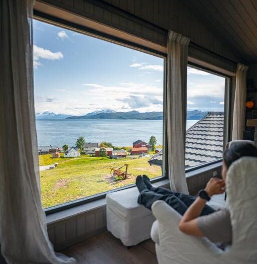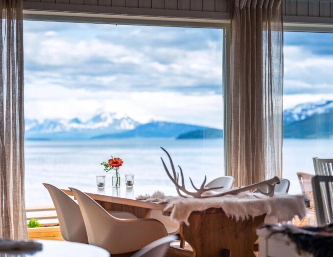 L’établissement se situe à 30 km de l’aéroport de Langnes, ce qui le rend facilement accessible tout en étant suffisamment isolé pour offrir une véritable expérience de déconnexion. Le ferry d’été reliant Brensholmen à Botnhamn, sur l’île de Senja, se trouve à seulement 17 minutes en voiture, ouvrant ainsi la porte à de nouvelles explorations dans les environs.