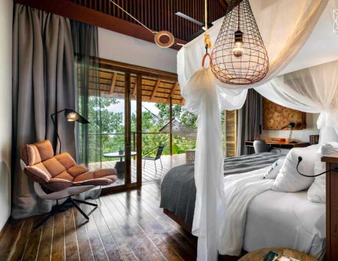 L’architecture du Zuri Lodge est caractérisée par un style épuré et contemporain, qui maximise l’ouverture sur les éléments extérieurs. Les structures sont conçues pour s’intégrer harmonieusement dans le jardin luxuriant, faisant de chaque logement un espace de vie baigné de lumière. Le Lodge a aménagé une magnifique piscine extérieure et une terrasse, véritables lieux de contemplation où l’on peut se prélasser face à l’horizon tropical.